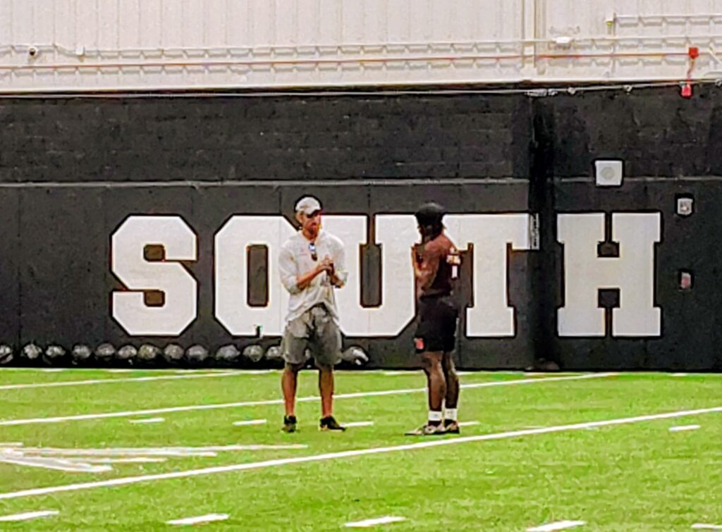 WITH LINEMAN KHYSEN BUFORD AFTER PRACTICE.
