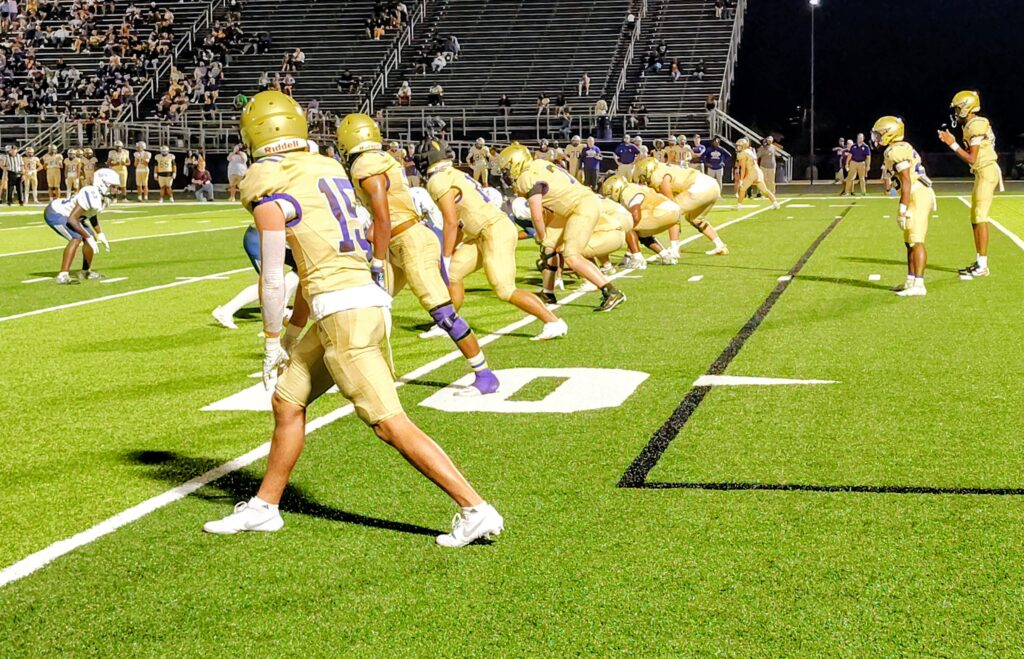 BGHS senior wideout Hudson Nottmeier made a decisive cut on a quick slant and caught Davis’ pass, in stride, for a 17-yard touchdown pass with 10:27 left in the first quarter. The Purples’ Bode Knee, one of Spader’s freshmen who have moved into significant roles with the squad, added the extra point.