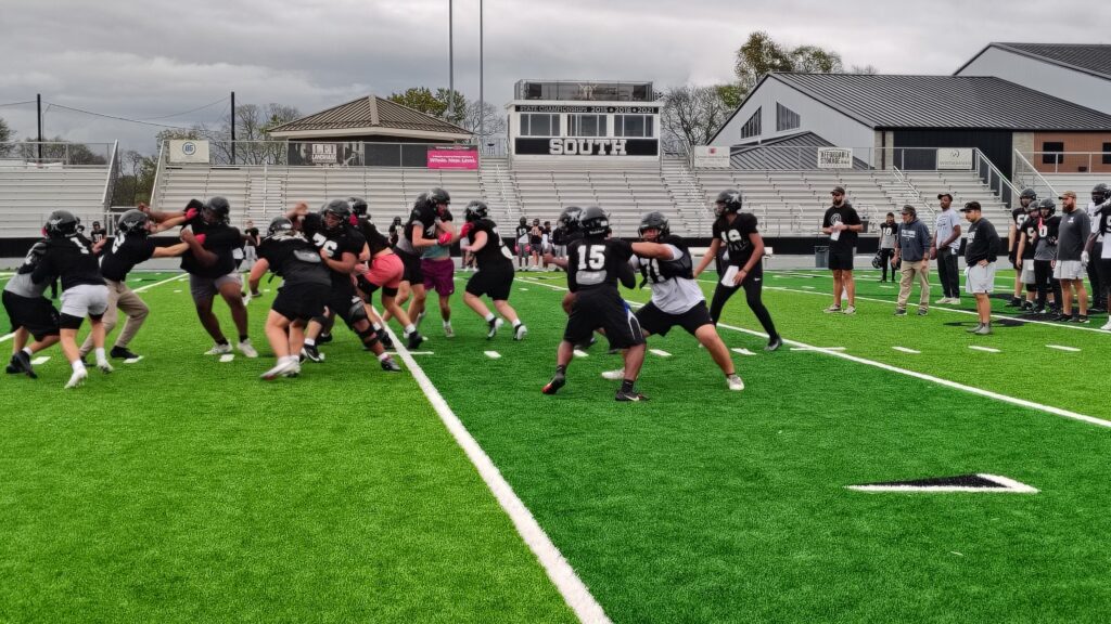 “I’d say we’re focused on ourselves,” said South’s standout wide receiver, 5-foot-10, 170-pound senior Jake Carter. “No slacking ff, everybody on the same page …”