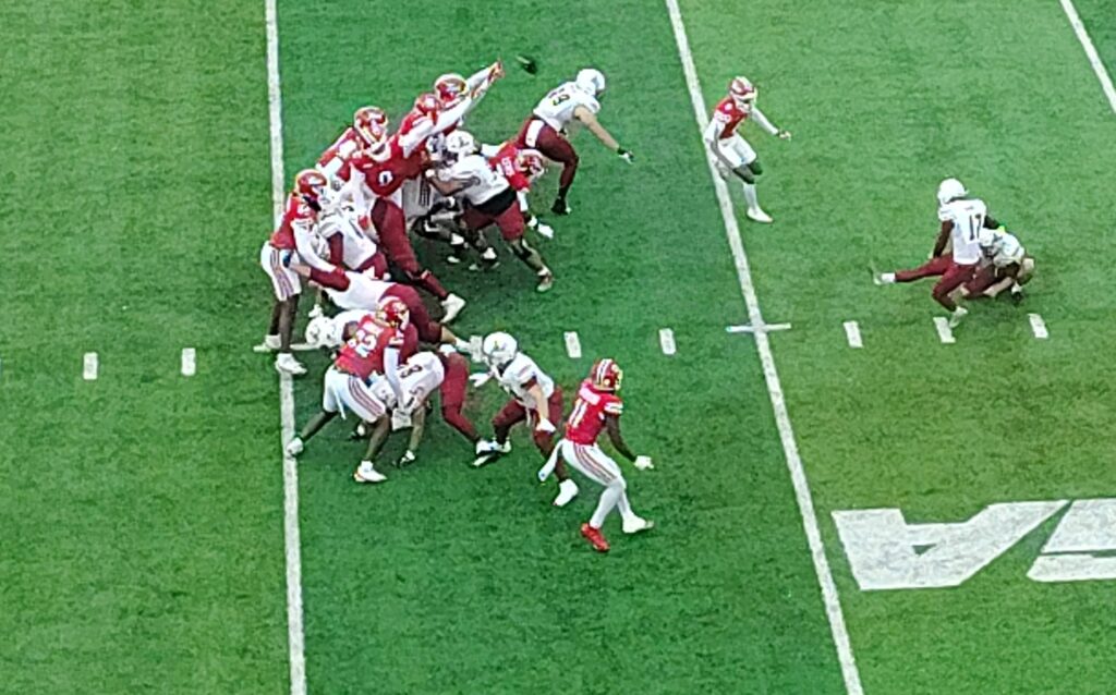 ON THIS 53-YARD KICK IN THE SECOND HALF …