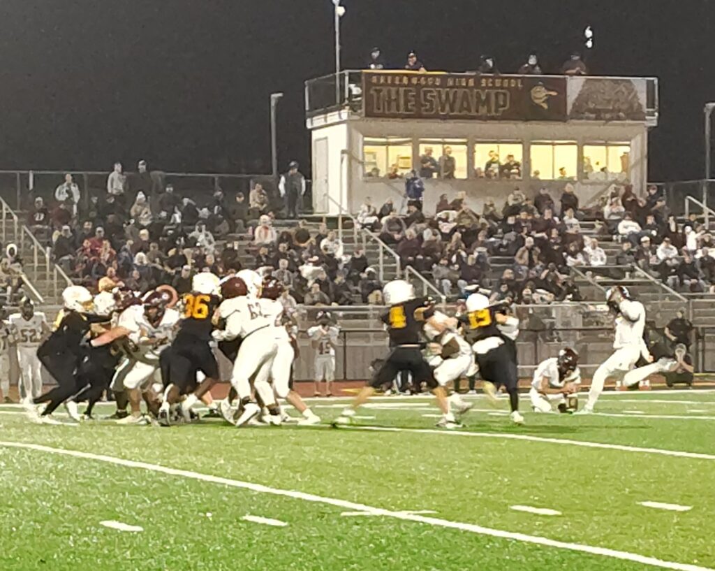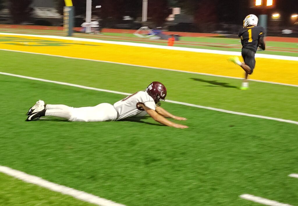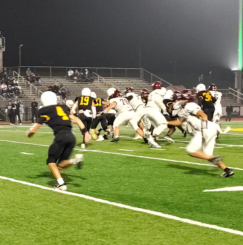 That’s when the Maroons put up a serious fight, with 5-foot-11, 230-pound bruiser Travion Stafford, who found the end zone from 11 yards out with 10:19 left in the game. Markezz Hightower, the senior M-NH workhorse, then scored on a two-point conversion, and the Gators’ lead was trimmed to 21-18.