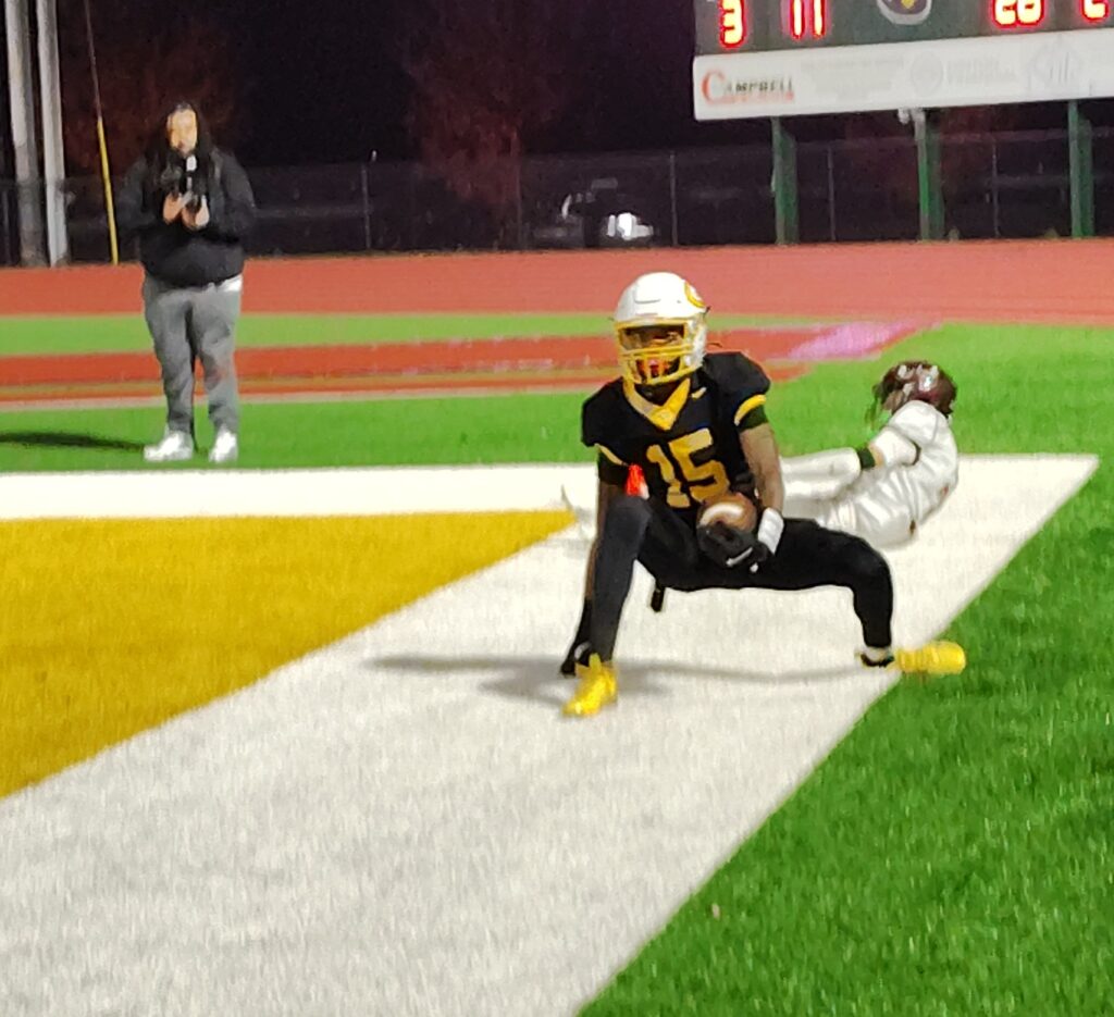 “I had to hit the brakes, on the route,” Eisenhower said with a wide smile. “I started falling back, at the goal line, and the ball slipped through my hands.
