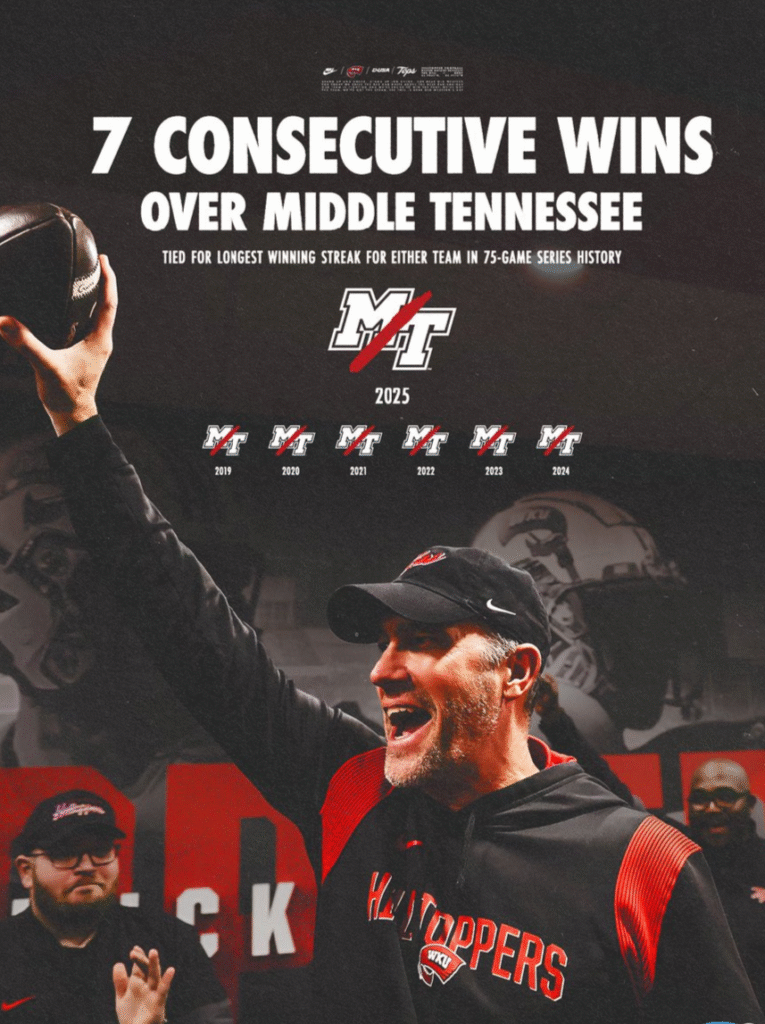 And, from the outside looking in, it might SEEM like Helton and the Tops have owned their longtime rival, Middle Tennessee State University, nothing could be further from the truth when analyzing WKU’s final home regular-season game on Saturday evening at Houchens-Smith Stadium.