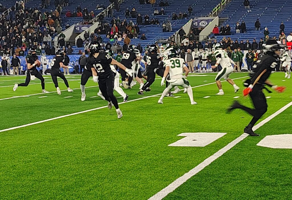 On the next play, the Shamrocks went with Ashton Taylor, on a sweep to the right side, and the Spartans’ defense found itself out of position, as Taylor scored on a 51-yard run just 49 seconds into the game.