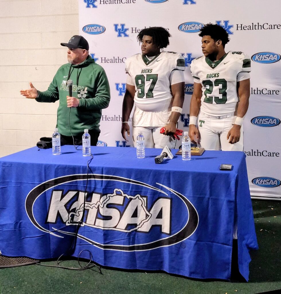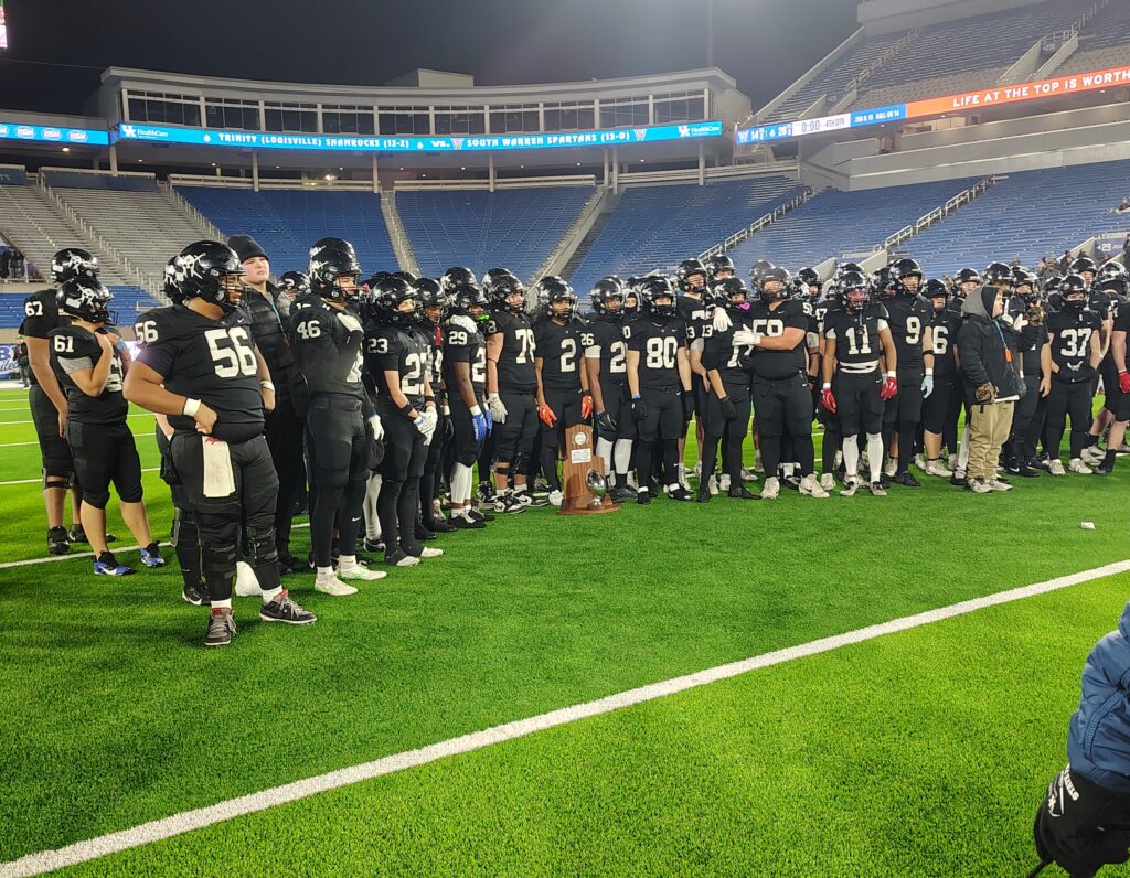 The Spartans would manage just one more TD, however, and Trinity’s big, physical defense kept South Warren at arm’s length in the KHSAA Class 6A championship game.