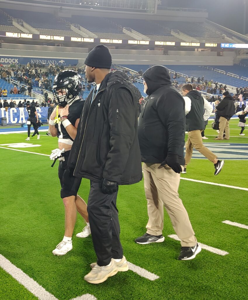 LEXINGTON — Things got a little chippy at the end, after three hours of trading blows at the line of scrimmage and Louisville’s Trinity High School landing a series of haymakers before halftime at UK’s Kroger Field on Saturday night.