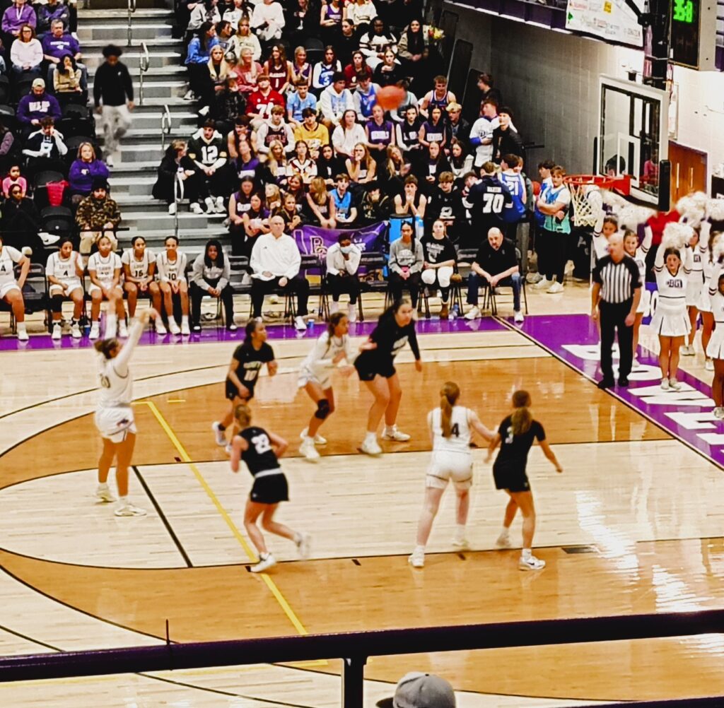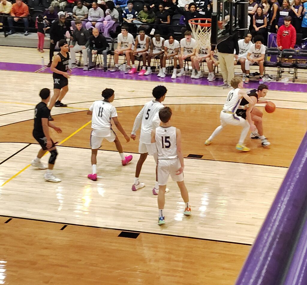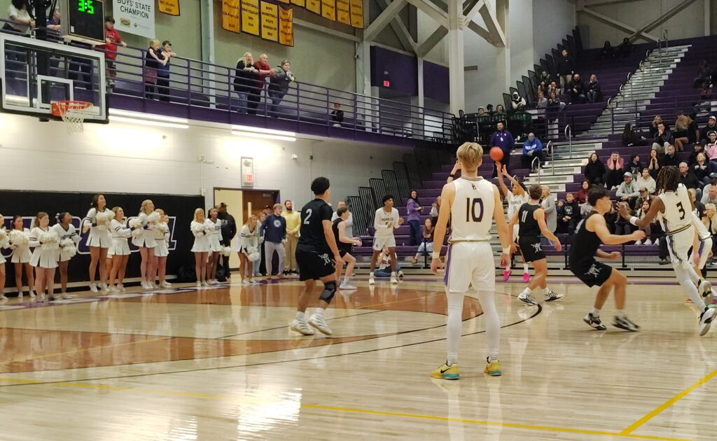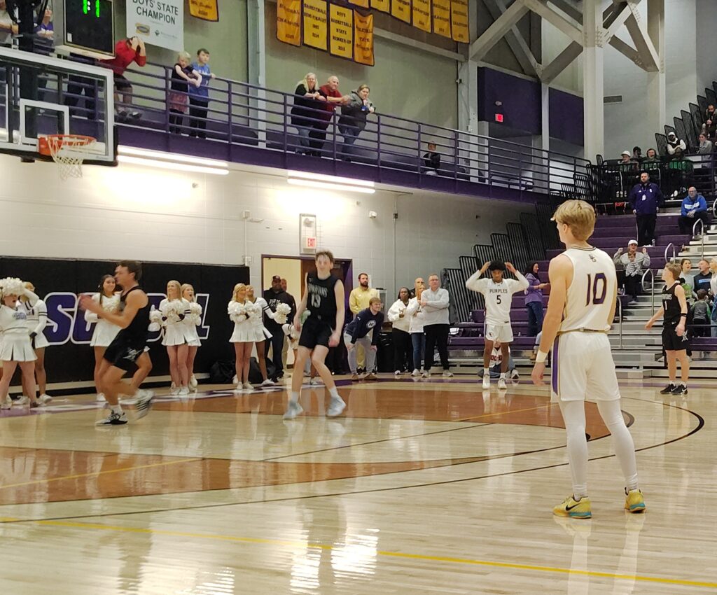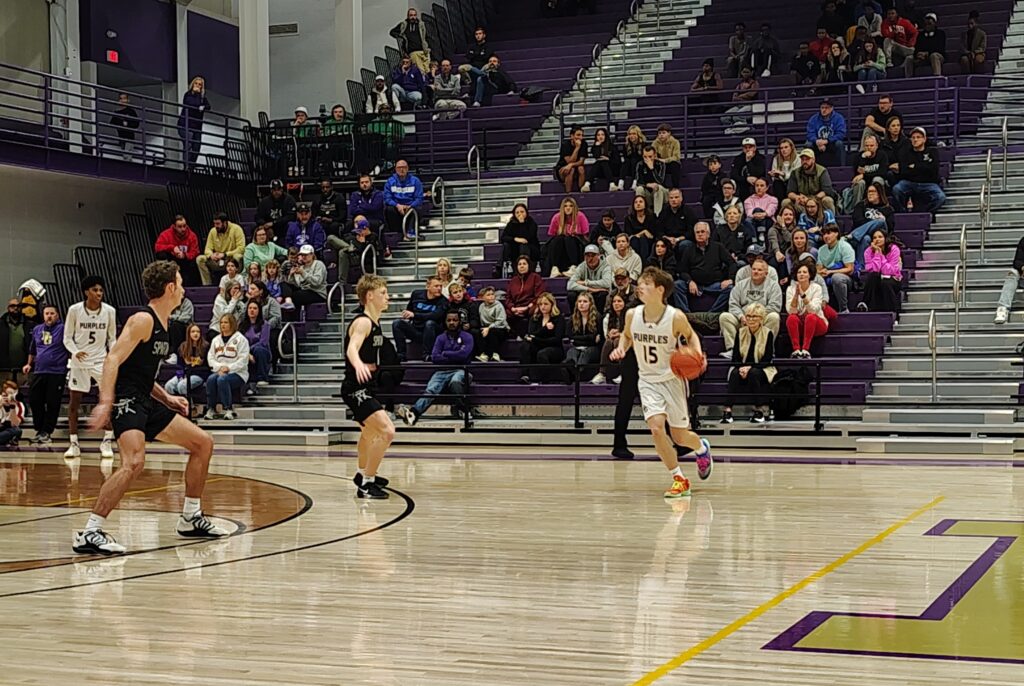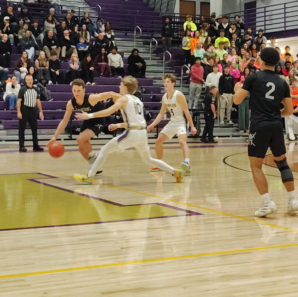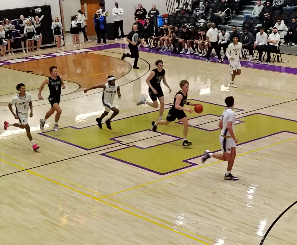 The Spartans had a critical basket of their own, when senior SWHS swingman Jax Decker scored on a baseline drive to the basket, but the Purples were in position to move in front.