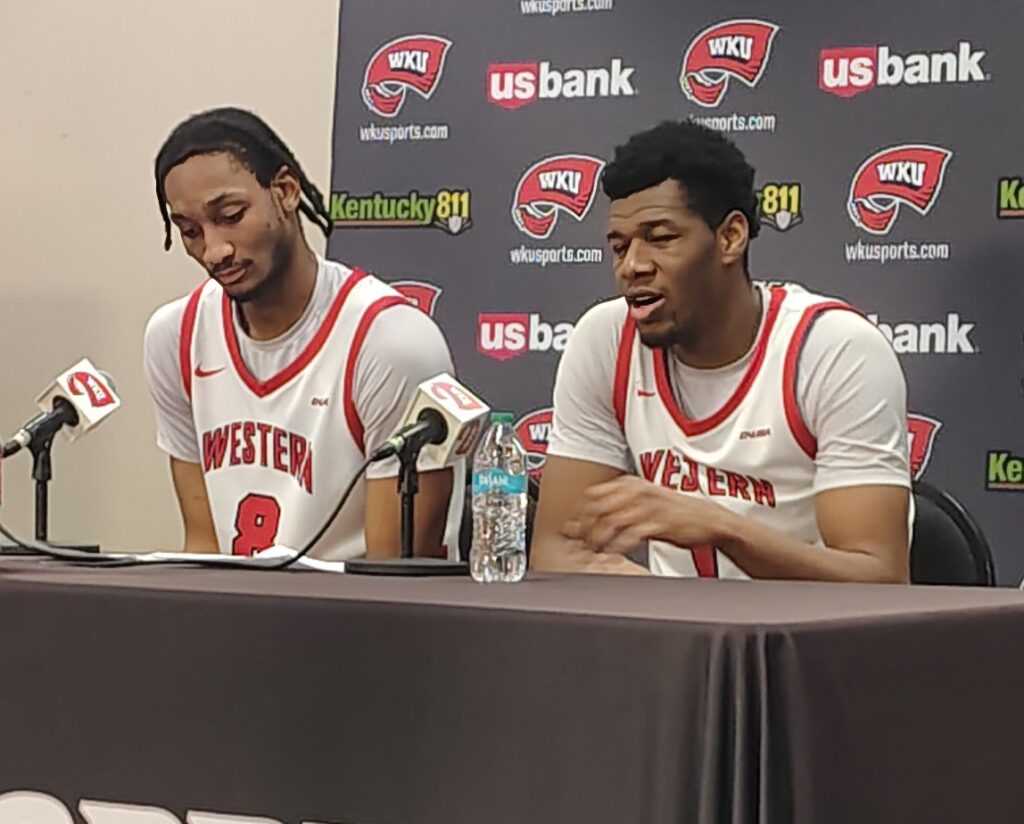 The Hilltoppers are still waiting on the return of sophomore swingman Teagan Moore, the team’s leading scorer. Moore wasn’t in the building on Thursday night, for the loss to Jax State, but he did join his teammates on the WKU bench for Saturday’s victory over the Panthers. Moore has been out of the lineup for two weeks, under the concussion protocol, and WKU coach Hank Plona said he was having symptoms from the injury on Thursday.
