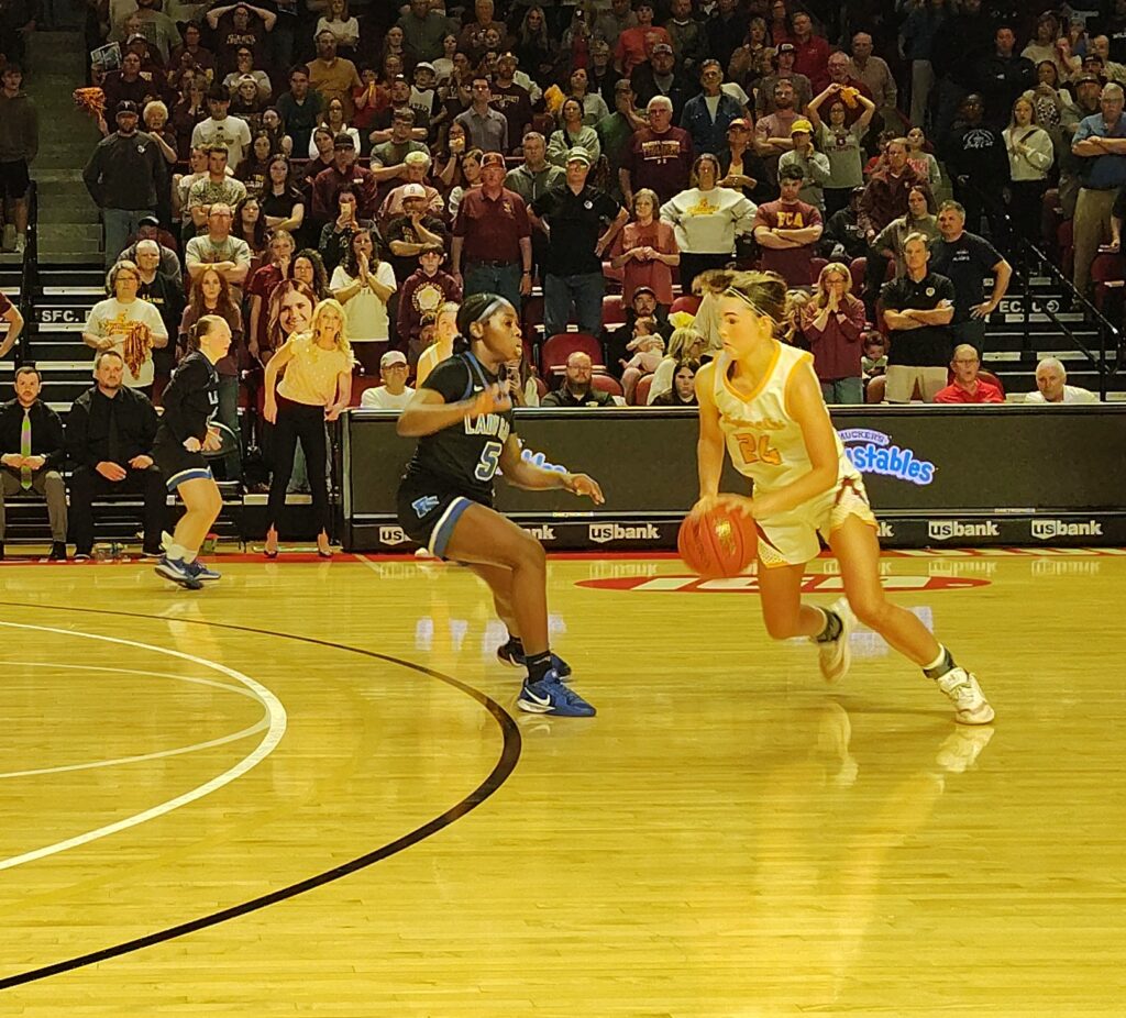 WATCHES TIFFANY HARRIGAN HIT A FREE THROW.
