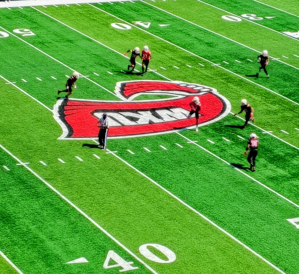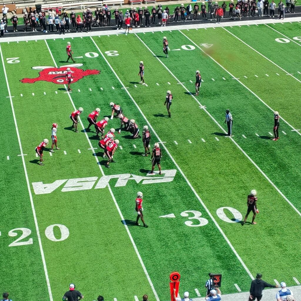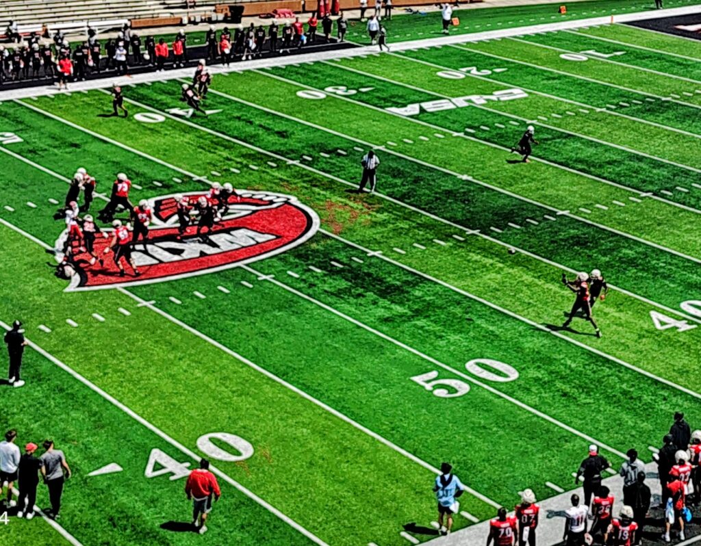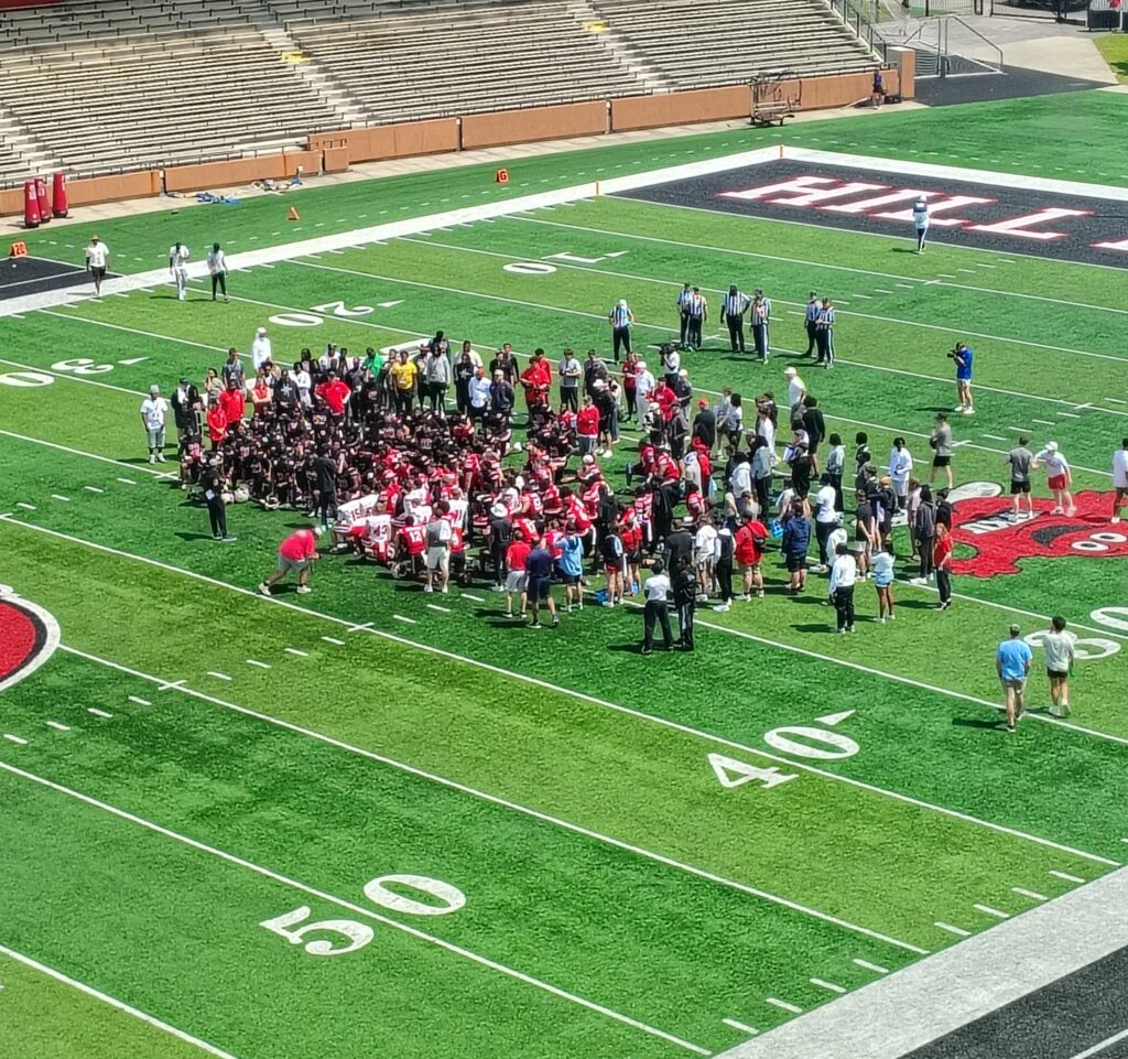 Eighth-year WKU head coach Tyson Helton implemented a unique offense-vs.-defense scoring system, with player health and evaluation purposes coming before EVERYTHING else, with the defense being awarded points for defensive stops (one point), three-and-outs (three points) and ‘touch sacks’ (three points).