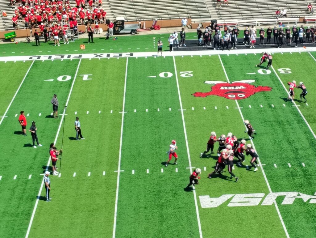 The WKU offense held the upper hand for nearly the entire affair, but the Hilltoppers’ defense made up steady ground before closing the scrimmage with a simple stop to tie things at 33 points each.
