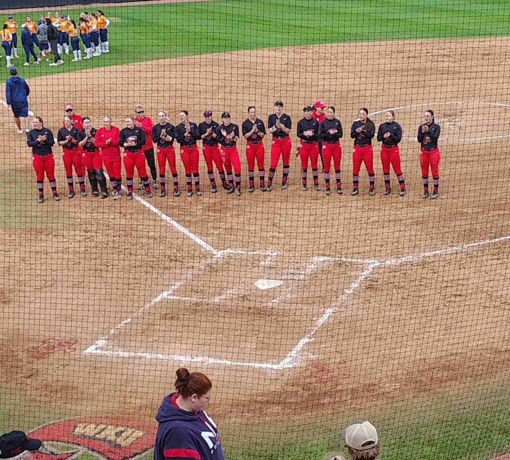 WKU right-hander Erica Hogue, a senior pitcher/utility player from Collins, Iowa, went five innings in tghe circle and improved to 19-3 on the season. WKU teammate Rylann Thomas worked the final two innings to complete the task at hand.