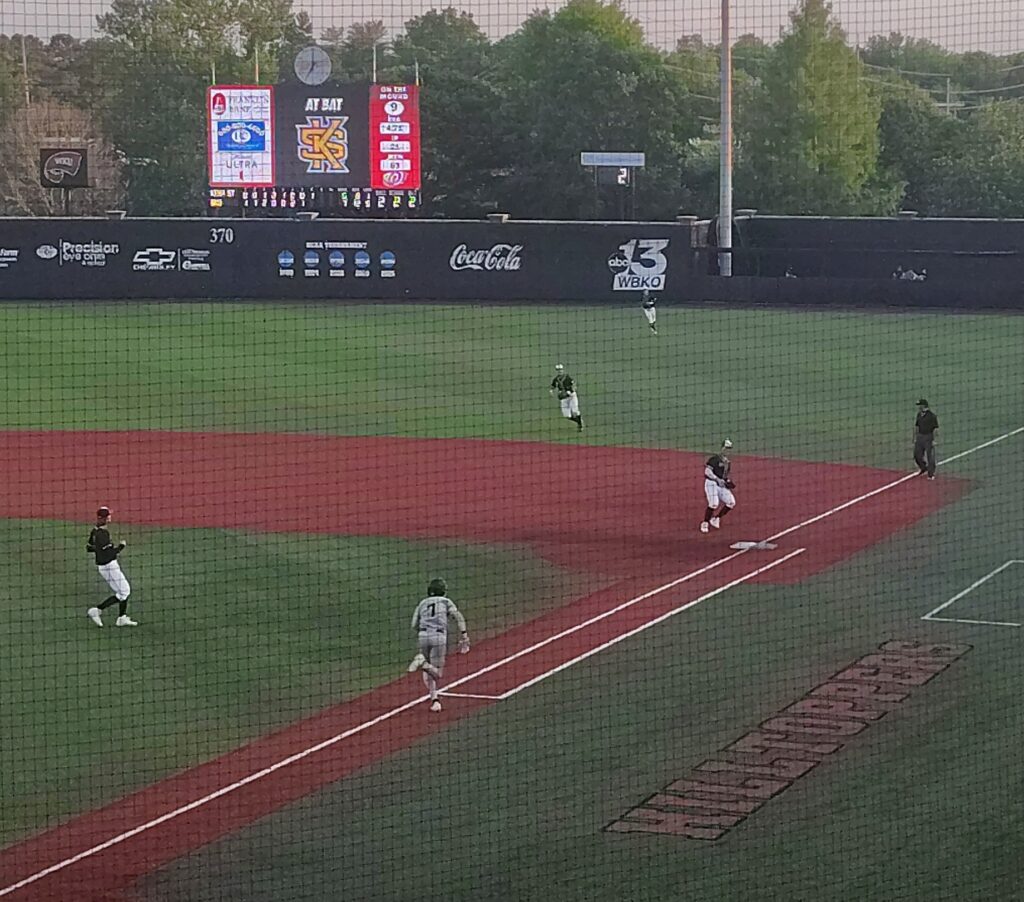 “That was like pulling teeth,” Rardin told WKU Radio’s Greg Davis, the Hilltoppers’ tennis coach, after the Hilltoppers finally closed the door on Kennesaw State, 8-6, in Game Two of the Conference USA series on a seasonably warm day at Nick Denes Field.