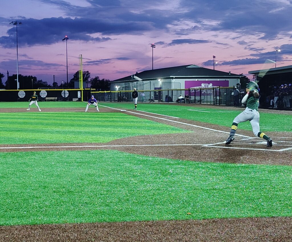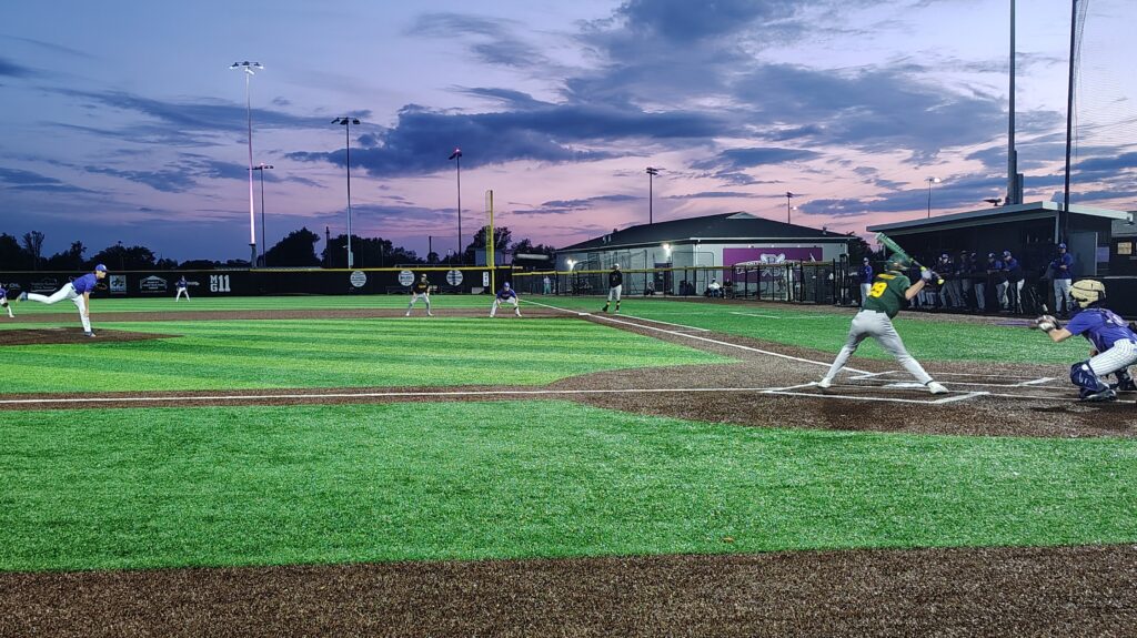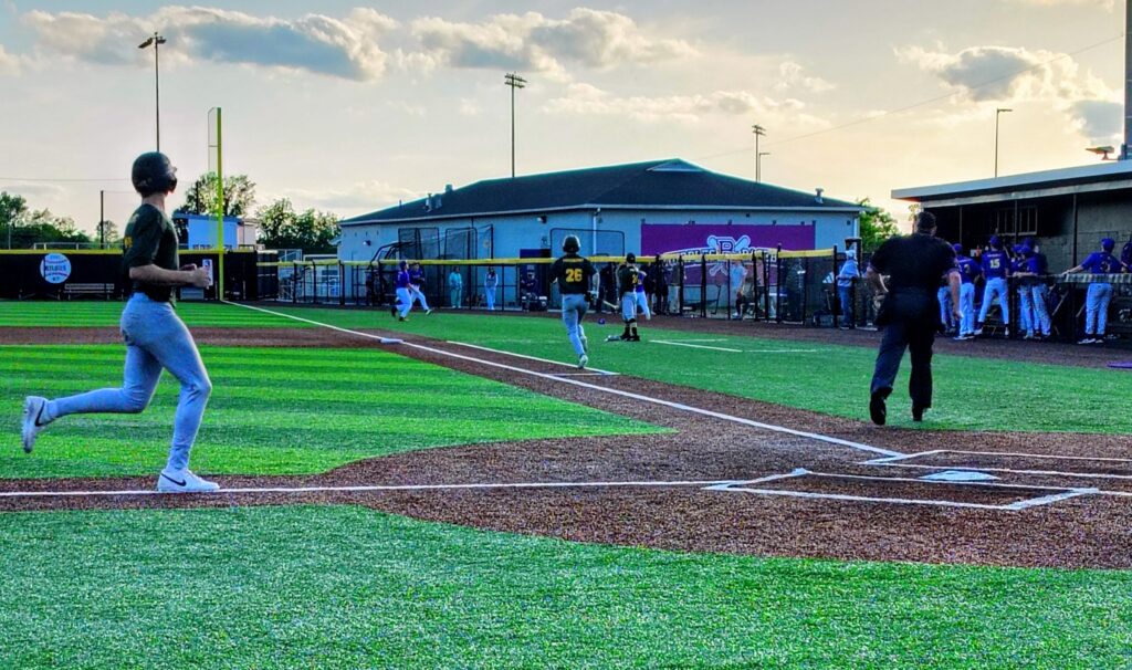 “We had two extra days to get ready,” Greenwood pitcher/infielder Whitt Glosick said after the Gators struck quickly, before cruising to an impressive 10-5 victory over the eighth-ranked Purples on Wednesday night at Harold J. Stihl Field. “We were getting super antsy … We came out, swinging, in the first inning, and that gave us some confidence.”